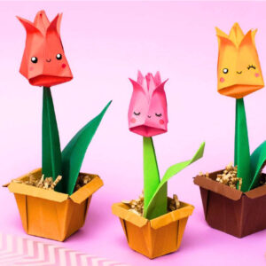 With these so real origami tulips in pots, your windowsill and tables will get brightened up. The wow part is that you can draw a kawaii face on your tulip bloom.